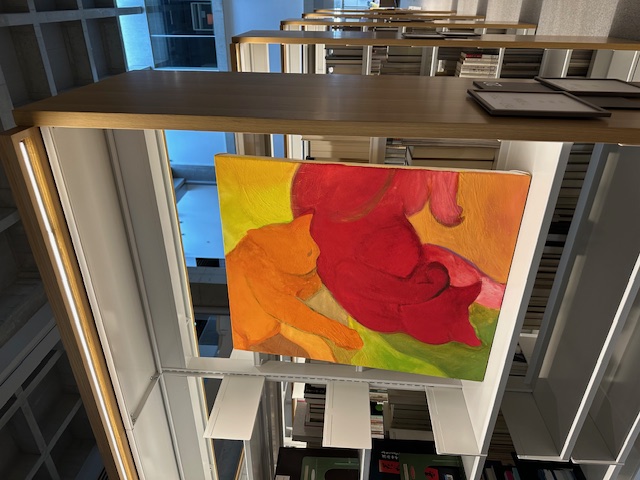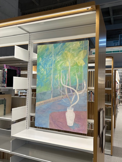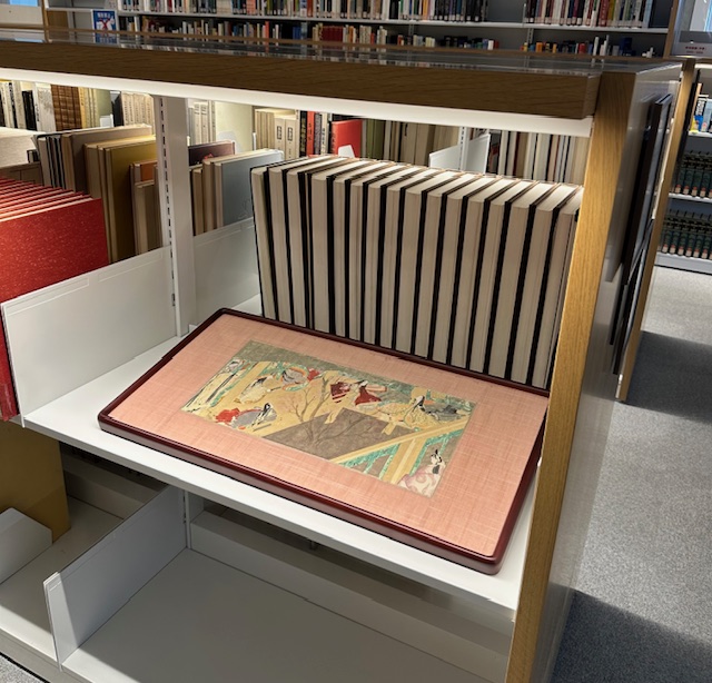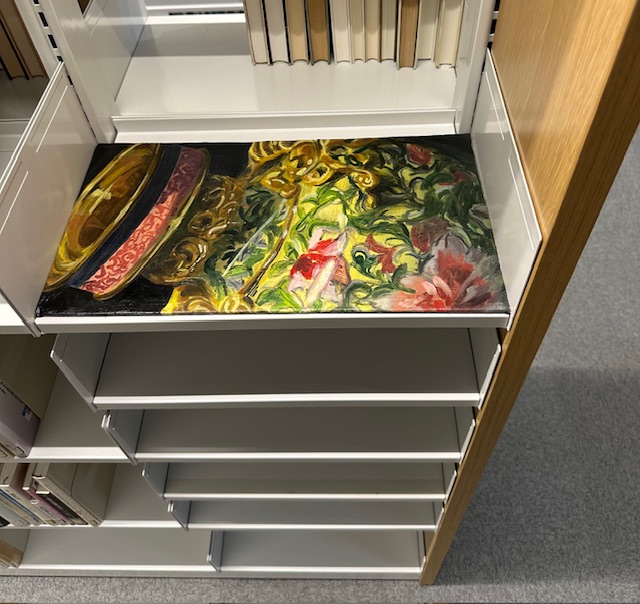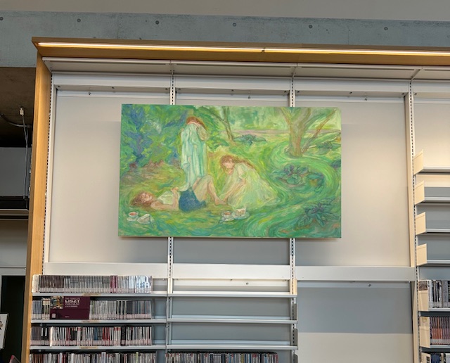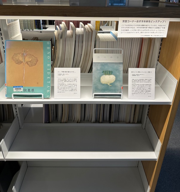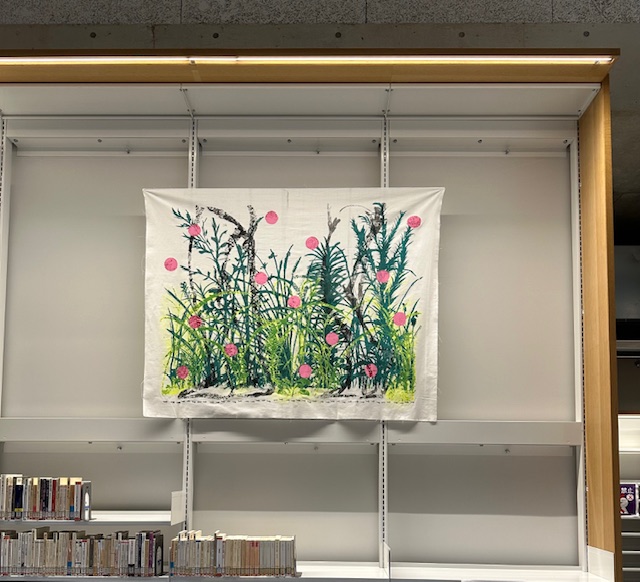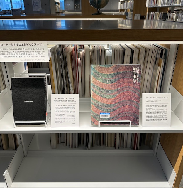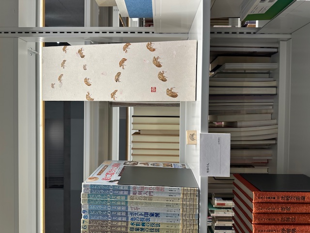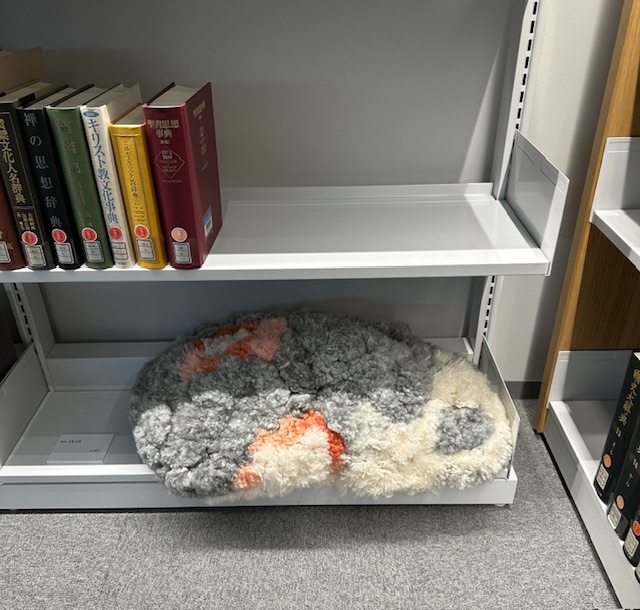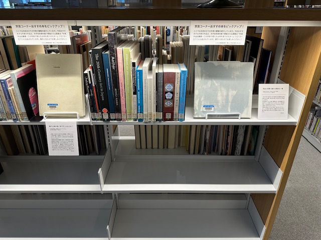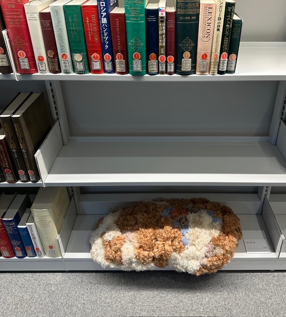 博物館実習講義では、前期授業に引き続き、図書館空間を活かした作品の展示方法を企画されました。